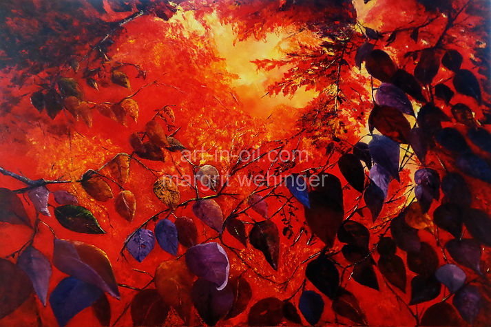 The pictures are created almost exclusively with the small painting palette knife - wet in wet. With this technique, the colours are also mixed directly on the canvas, which allows the luminosity and intensity of the colours to be kept.